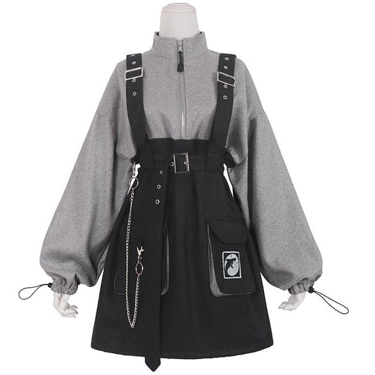 DARK CHAIN WHALE PATTERN SWEATSHIRT DRESS UB2543
