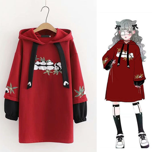 "RED BLACK PANDA EMBROIDERY" HOODIE N110512