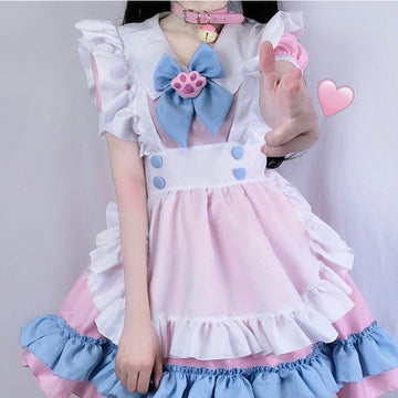 "LOLITA CAT PAW BOW PINK BLUE MAID" OUTFIT DRESS N022406