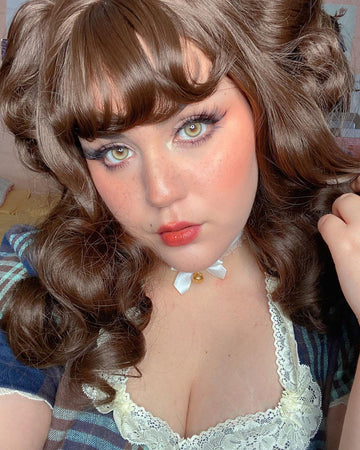 "chocolate/Green Cute Sweet" Curly Long Wig S033005