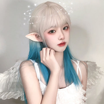 "Silver Grey Gradient Air Bangs" Long Straight Wig S033004