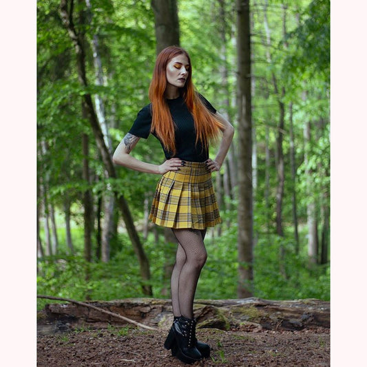 [@kerolweber] "XS-5XL PLUS SIZE YELLOW/BLACK PLAID" PLEATED SKIRT K110804REVIEW