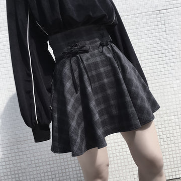"JK DARK PURPLE GRID" PLEATED SKIRT / TIE N073015