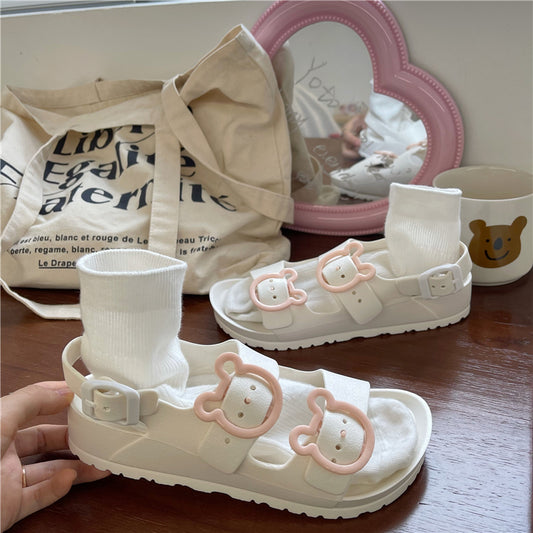 CUTE BLACK/WHITE BEAR BUCKLE SANDALS UB2762