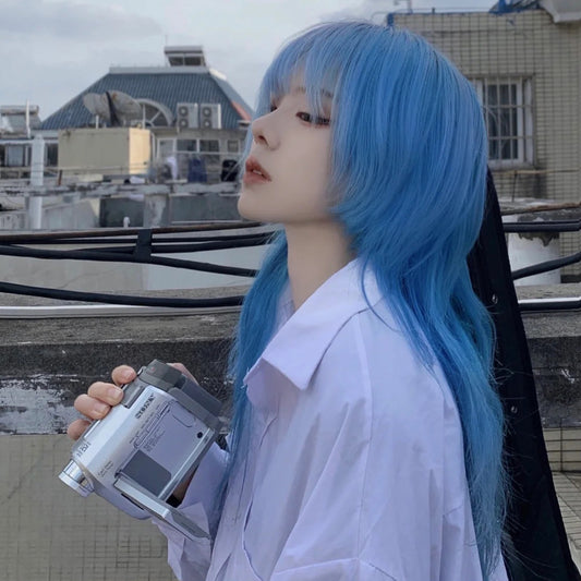 [@laurenxburch] Blue Color Gradient Lolita Cute Long Straight Wig UB6145