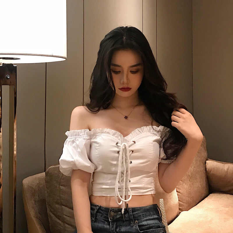 [@_nikiica_] "RETRO STRAPLESS PUFF SLEEVE HIGH WAIST" TOP K051805REVIEW