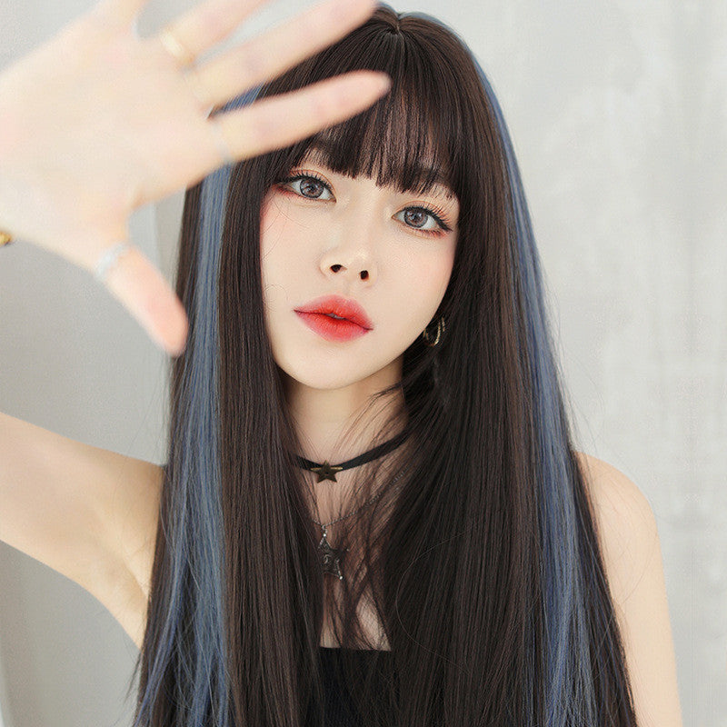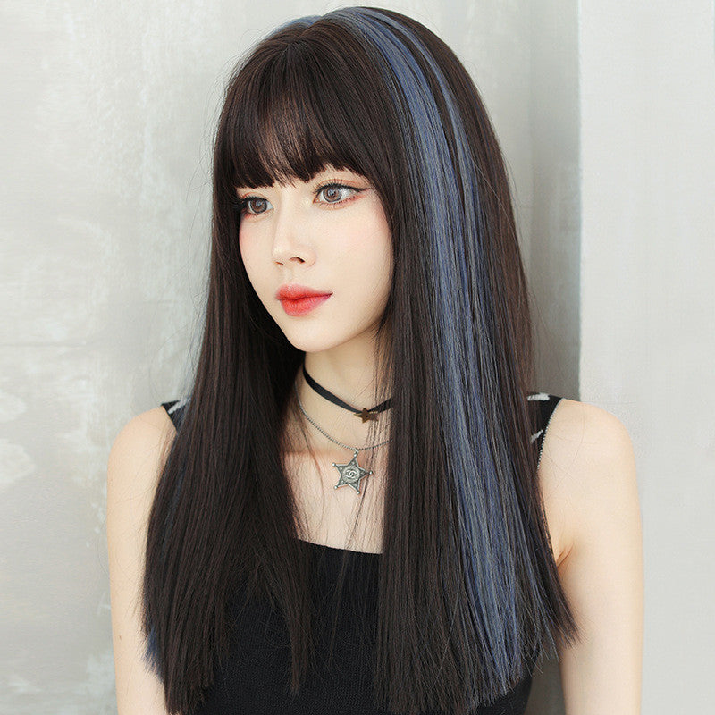 AIR BANGS SMOG BLUE HIGHLIGHTING LONG STRAIGHT WIG UB2583