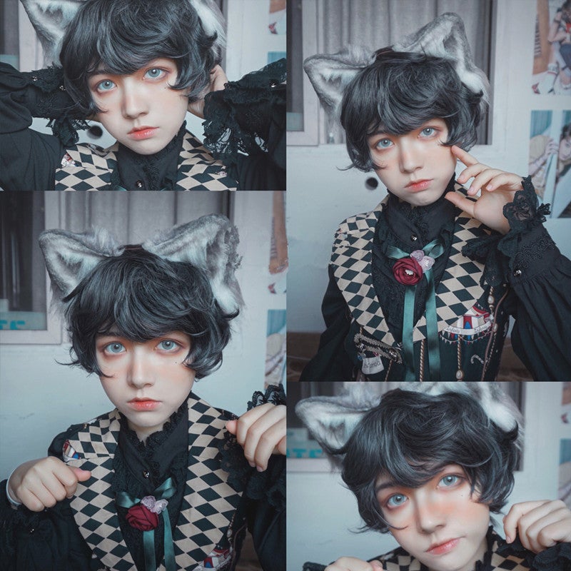 "GRAY / BEIGE HARAJUKU CURLY" SHORT WIG D041508