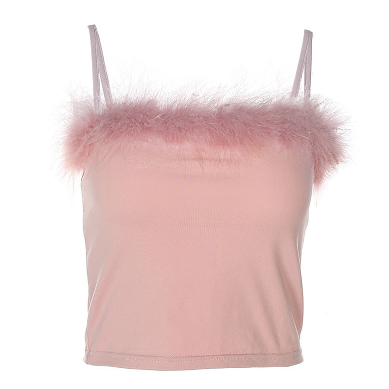 [@belivkaa] “PINK CUTE SEXY FURRY SUSPENDER” VEST TOP W031101REVIEW