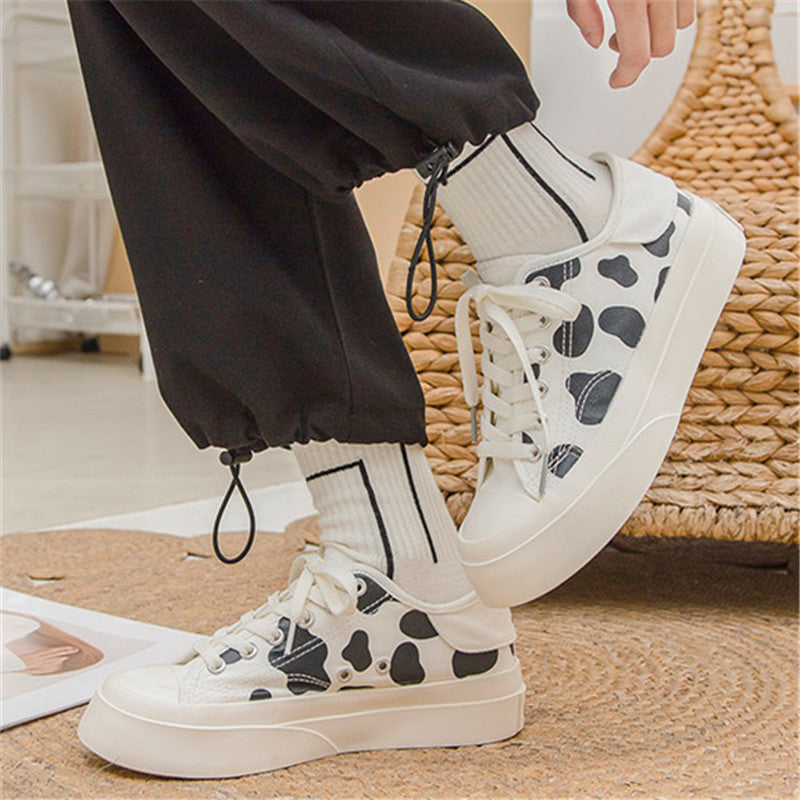 BLACK WHITE COW MILK CANVAS SHOES UB2628