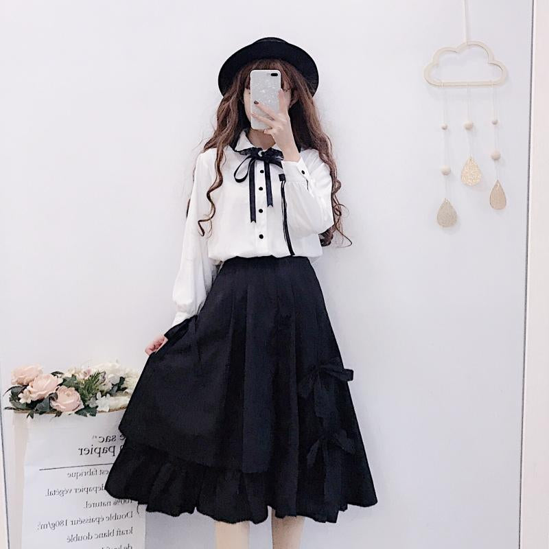 "BLACK CUTE BOW IRREGULAR" SKIRT N041201