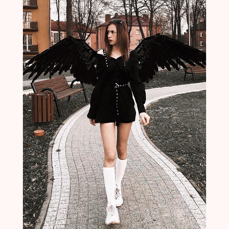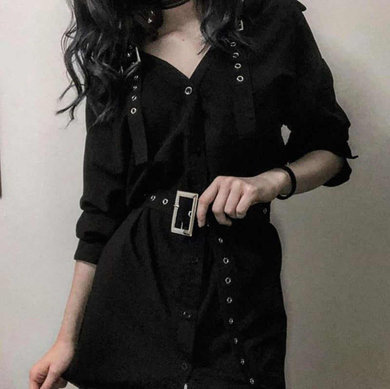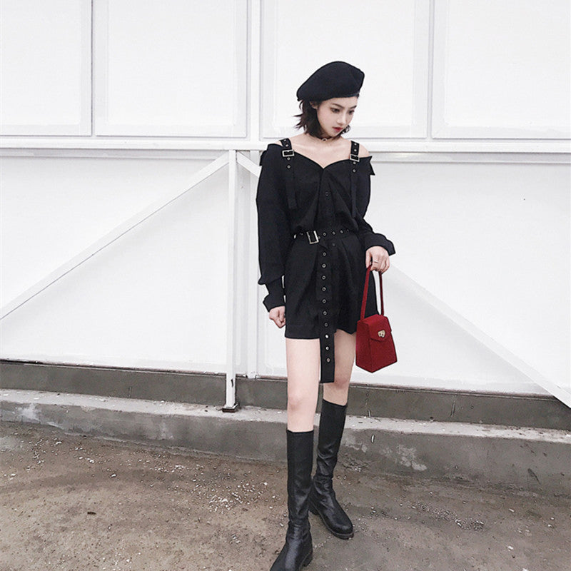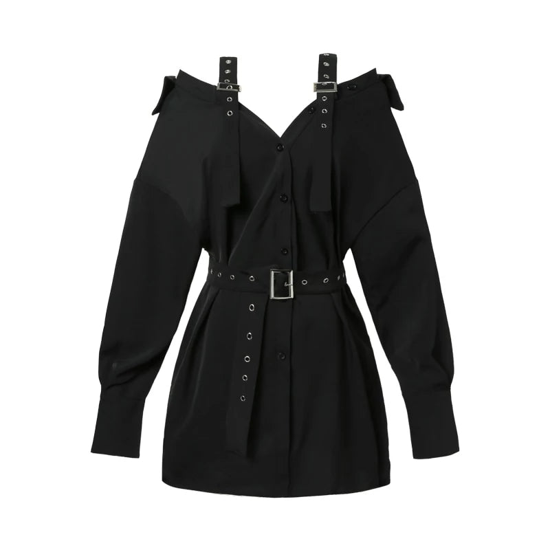 "BLACK GOTHIC OFF SHOULDER" SHIRT DRESS K082201