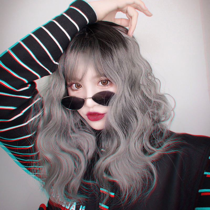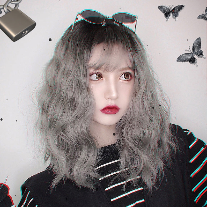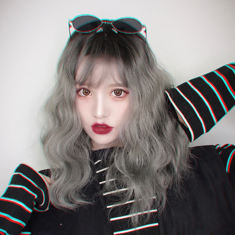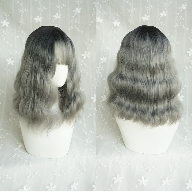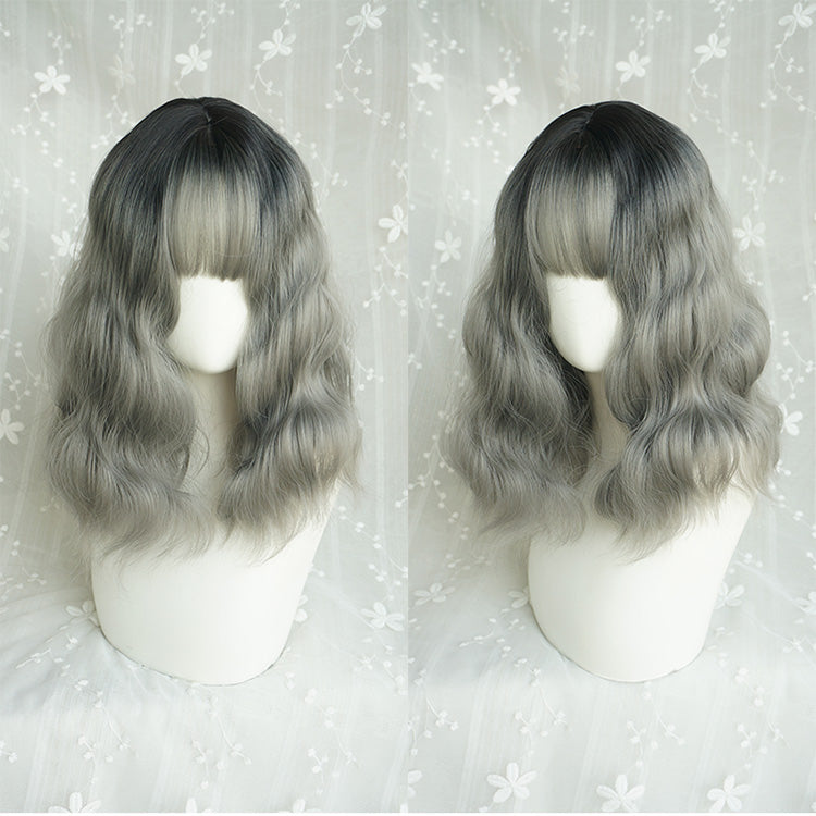 "BLACK GRAY GRADIENT MID-LENGTH CURLS" WIG Y040403