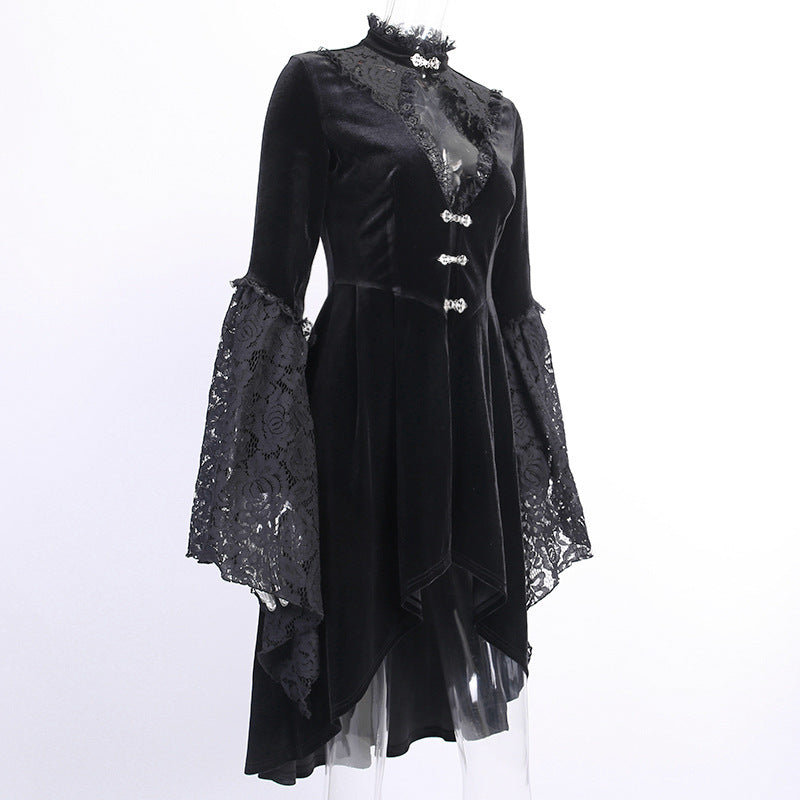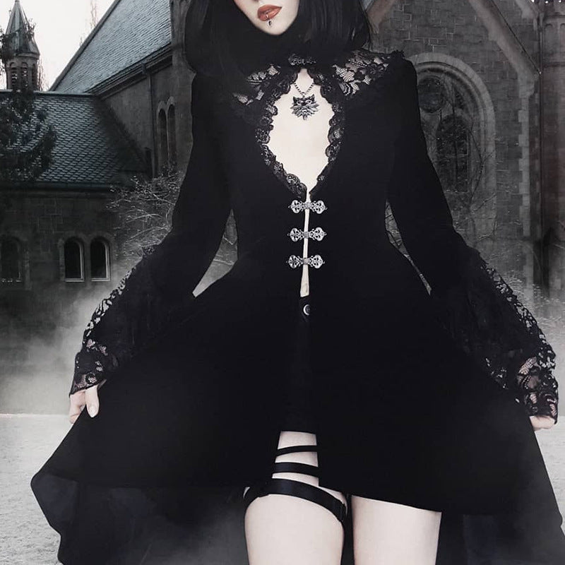 Black Lace Long Sleeve Lantern Sleeve Dress EV4002