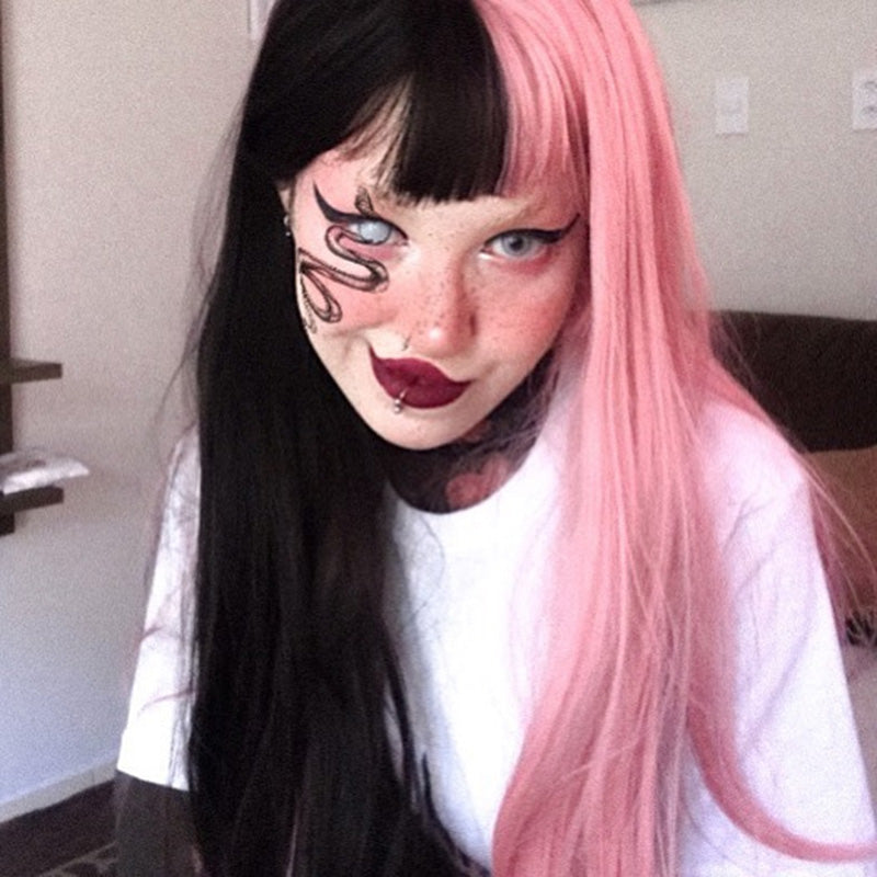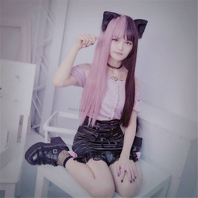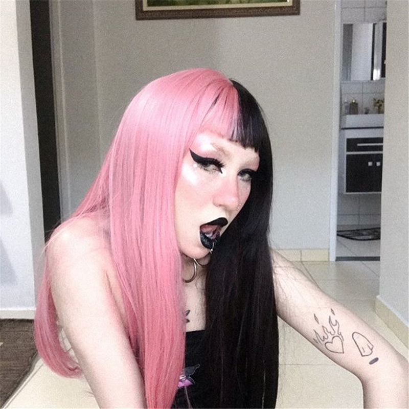 "HALF BLACK HALF PINK LONG STRAIGHT" WIG K071713