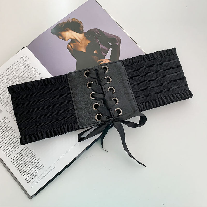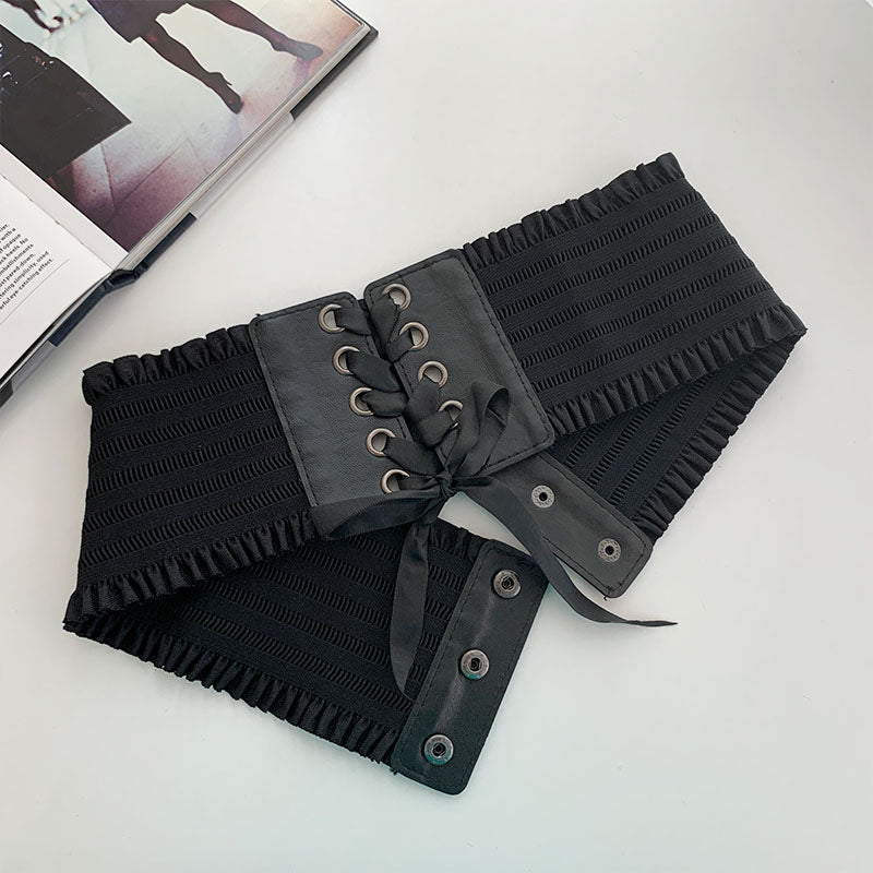 Black Pleated Lace Corset N052704