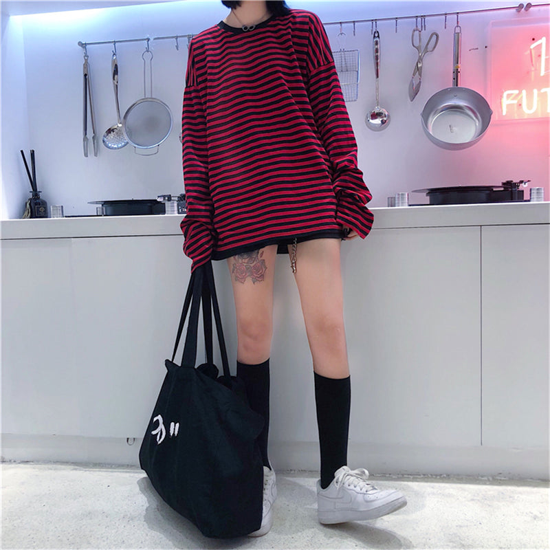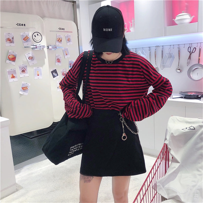 BLACK/RED STRIPED LONG SLEEVE T-SHIRT UB2693