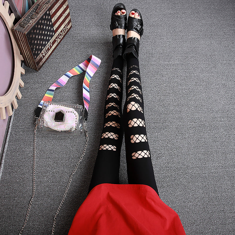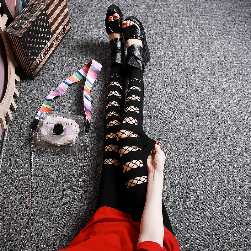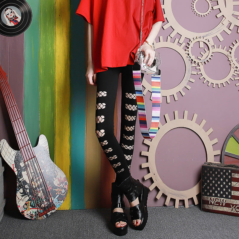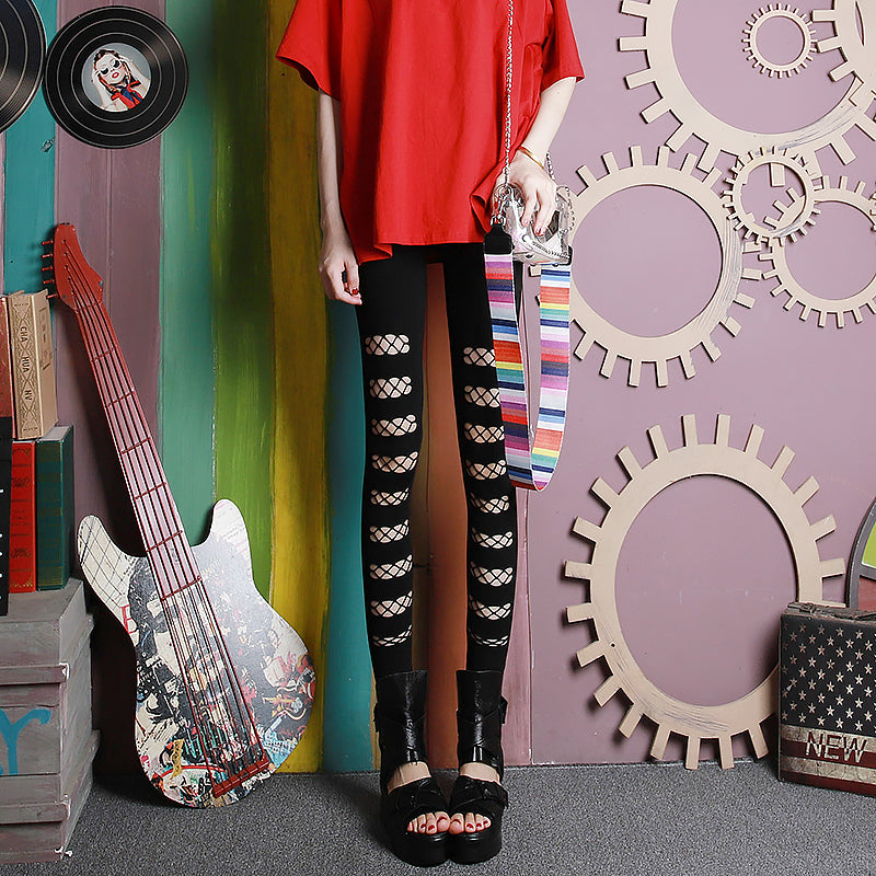 "BLACK STRETCH MESH RIPPED" LEGGINGS N042704