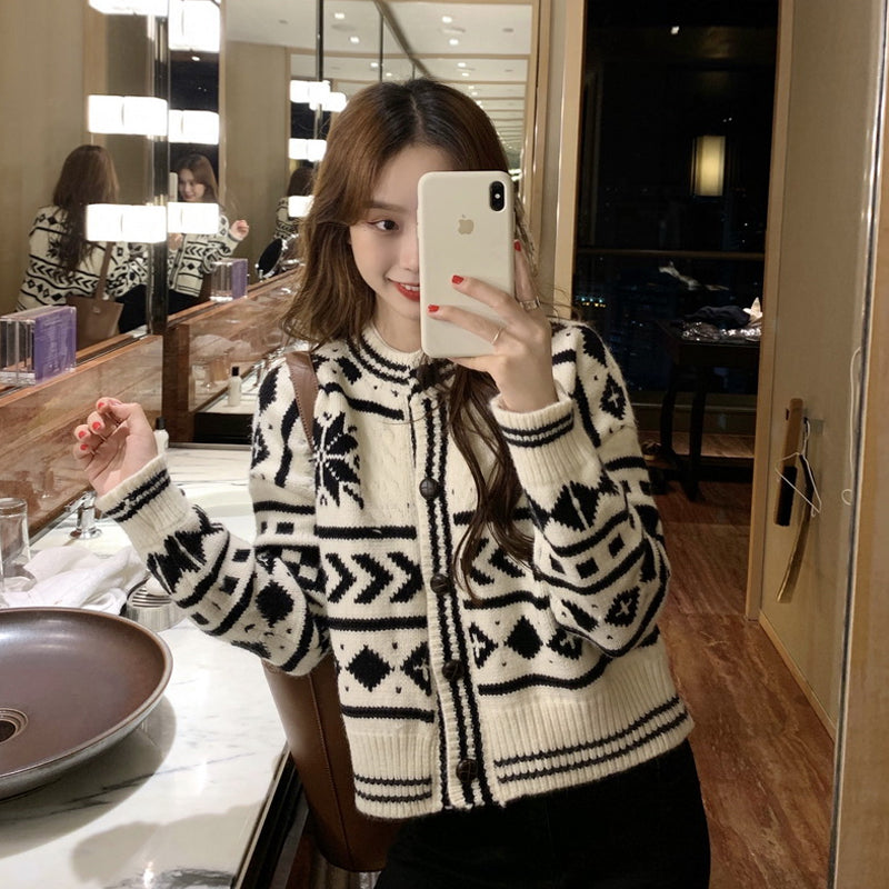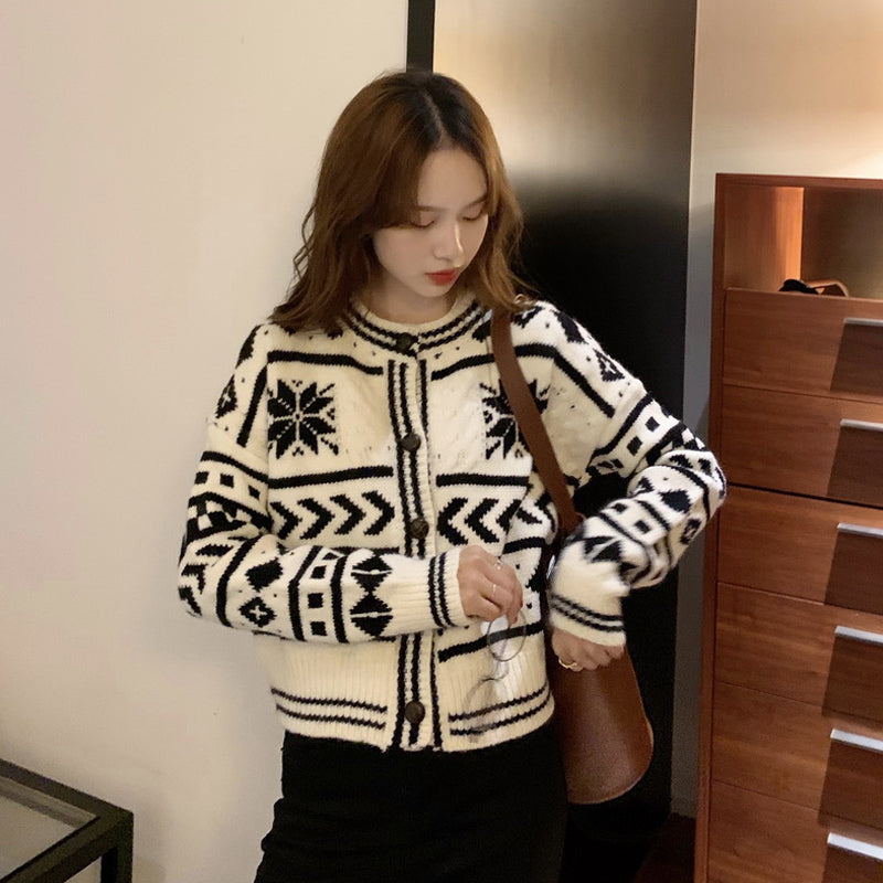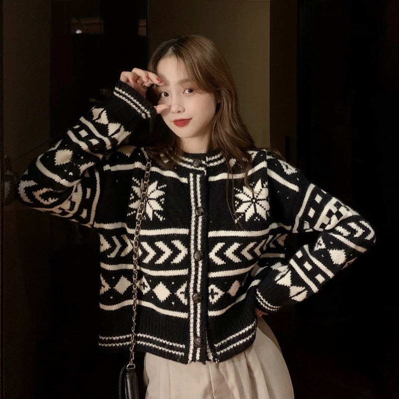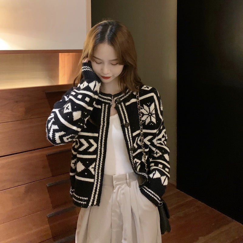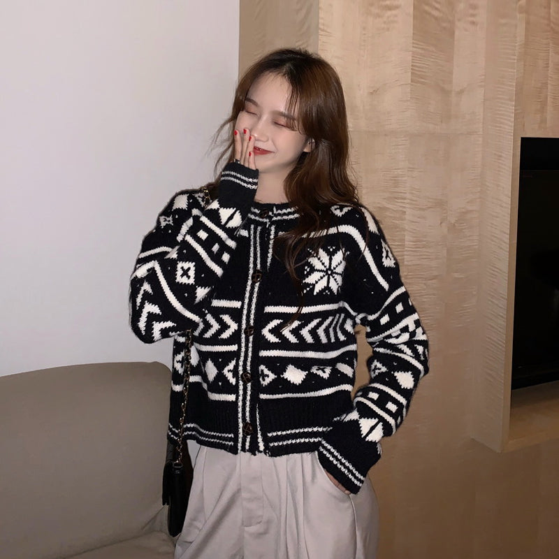 "BLACK WHITE PATTERN SWEATER" CARDIGAN N102106