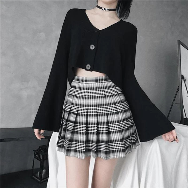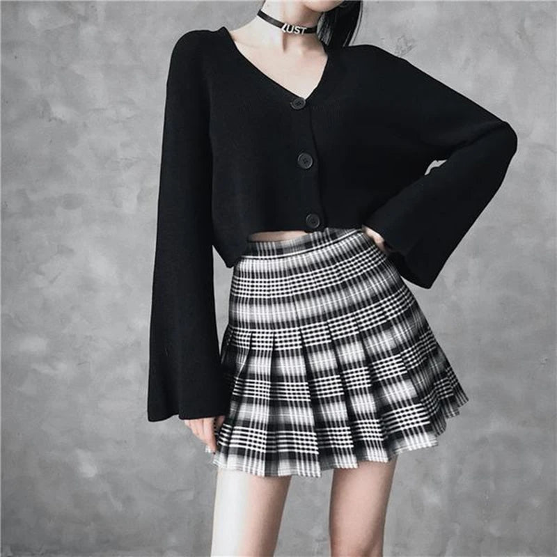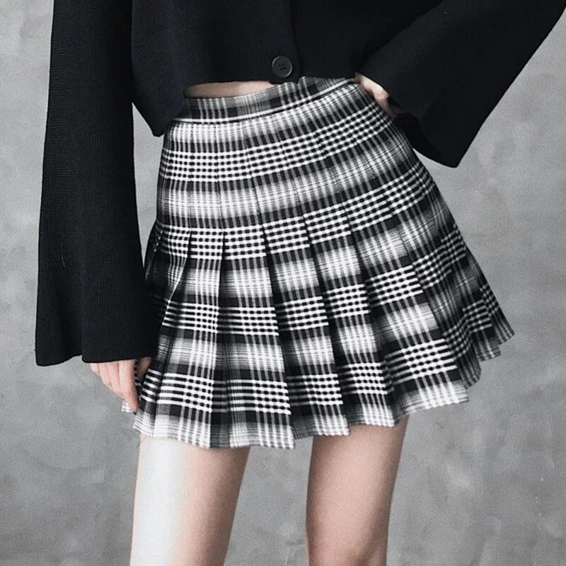 BLACK WHITE PLAID PLEATED SKIRT UB2472