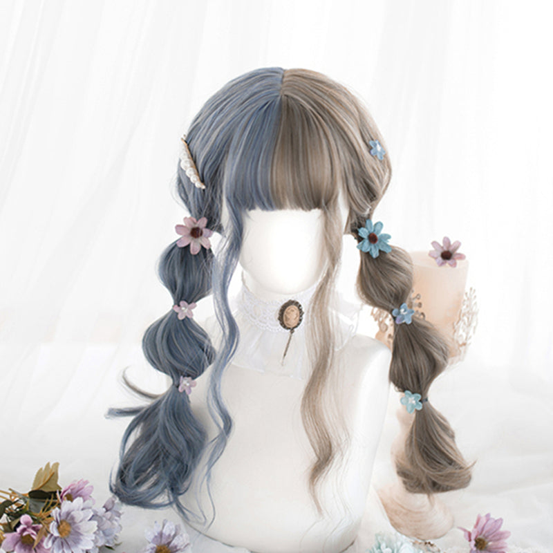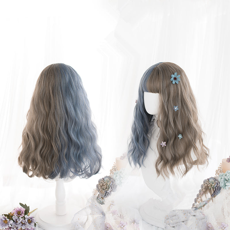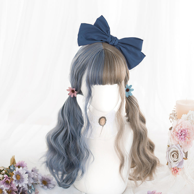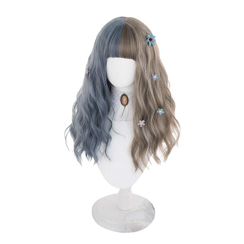 "HALF BLUE HALF BROWN LONG CURLY HAIR" WIG H081201
