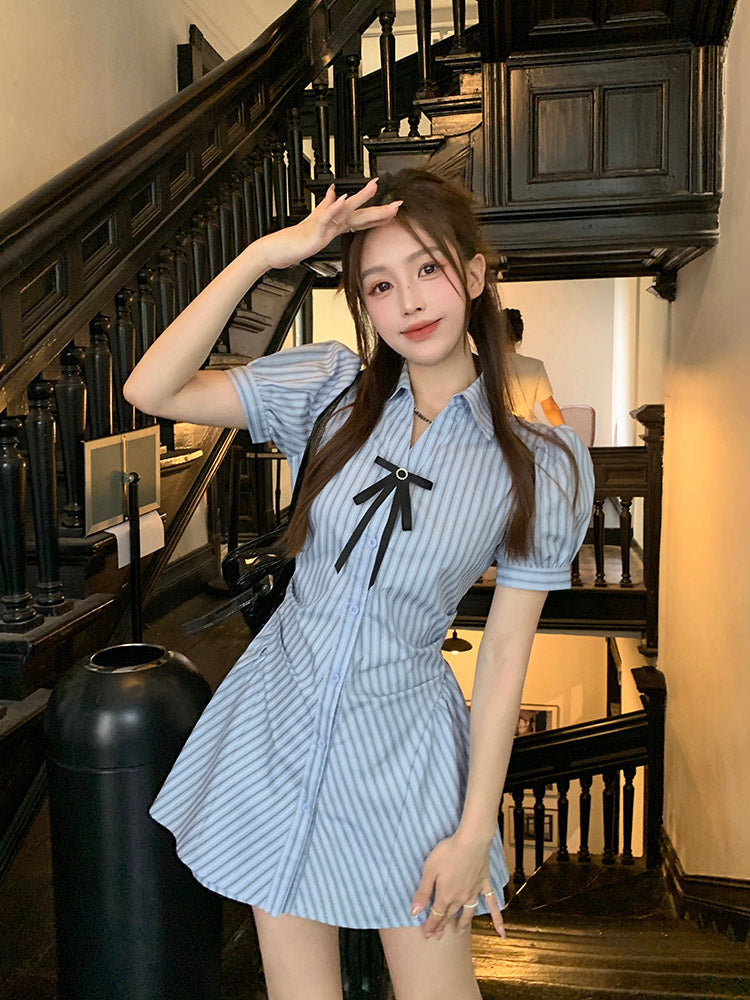 Blue Striped Shirt Dress UB98469