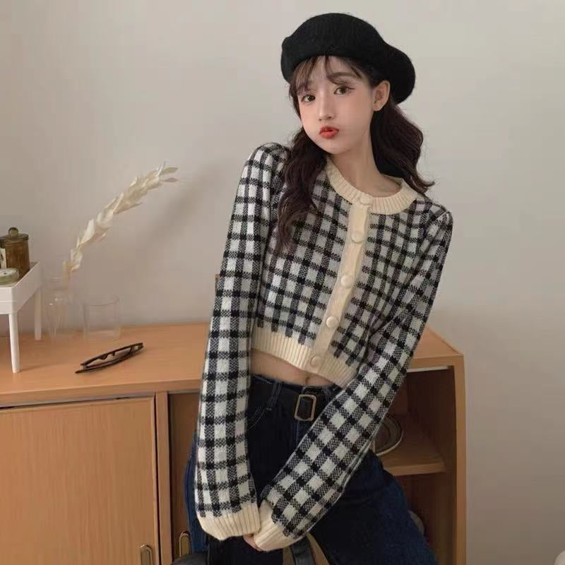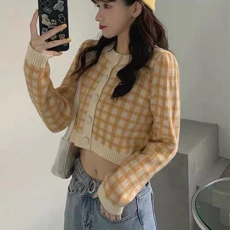 BRIGHT COLOR CHIC PLAID KNITTED SWEATERS UB2711