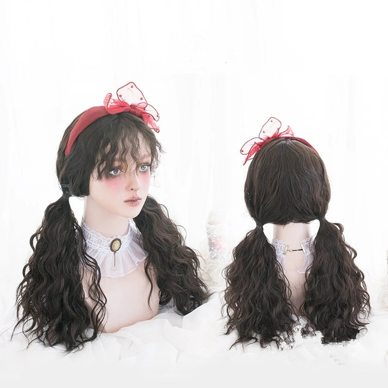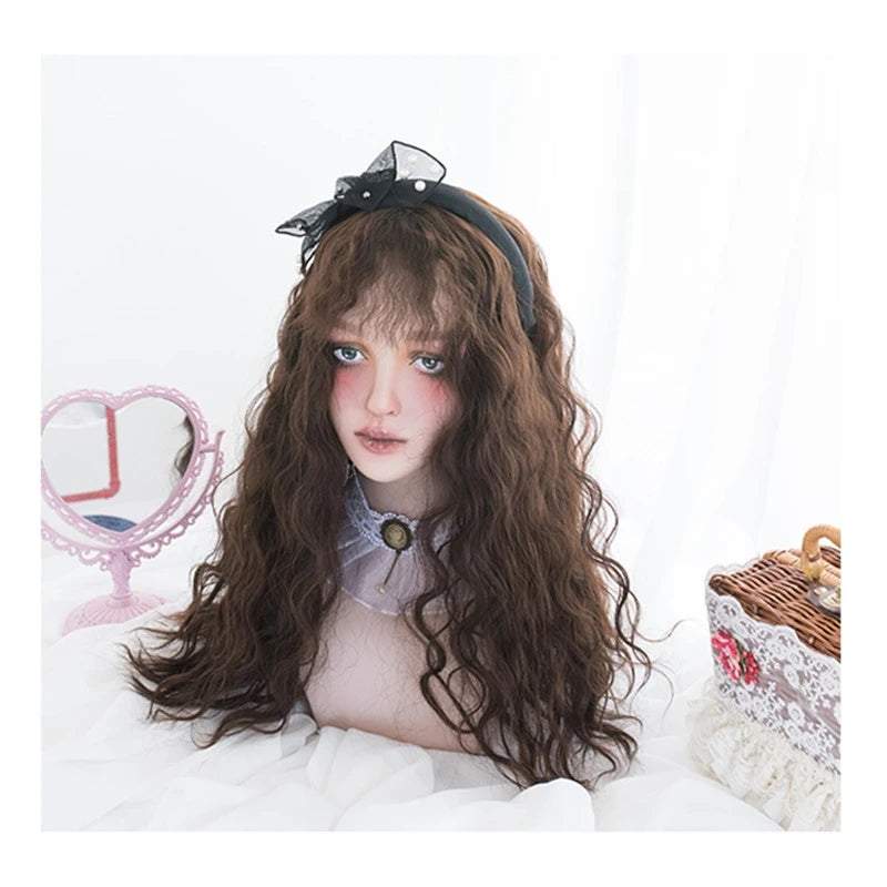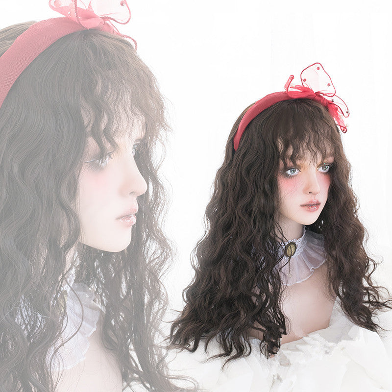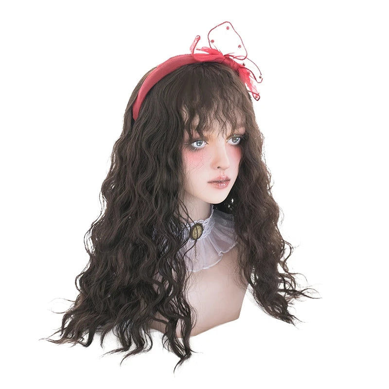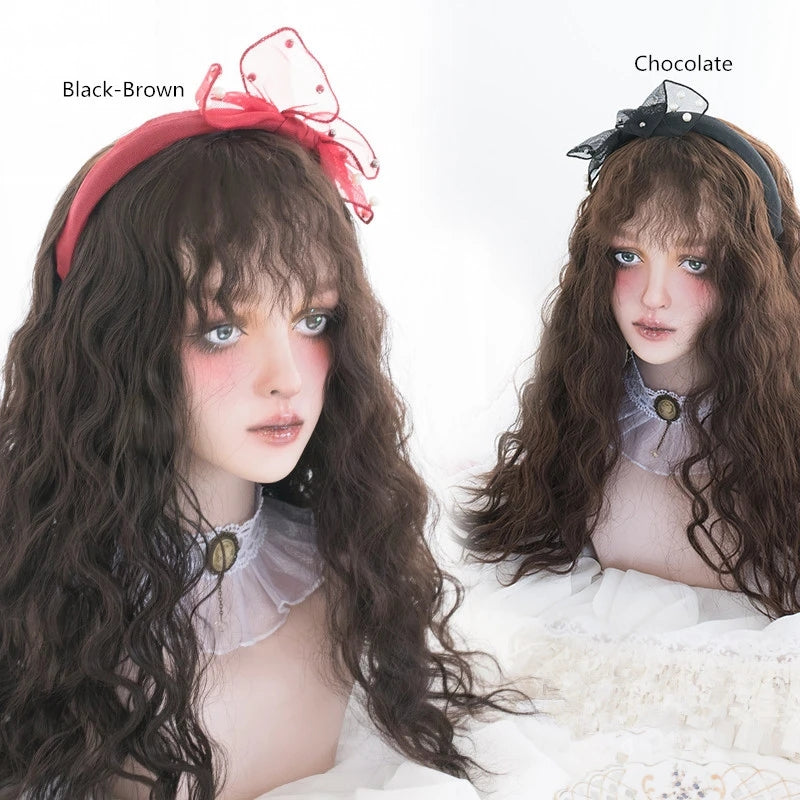 "BROWN BLACK/CHOCOLATE BANGS WAVY CURLY LONG" WIG D041520