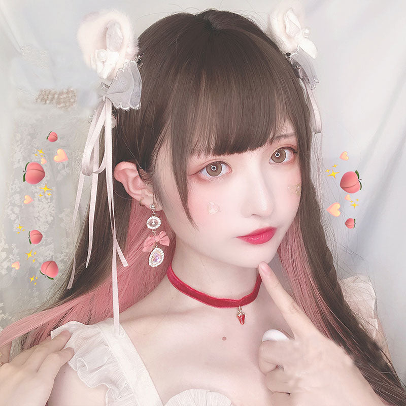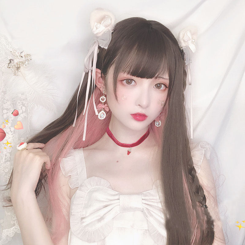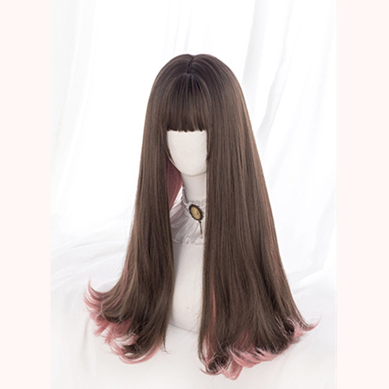 "BROWN PINK LONG STRAIGHT" WIG D071515