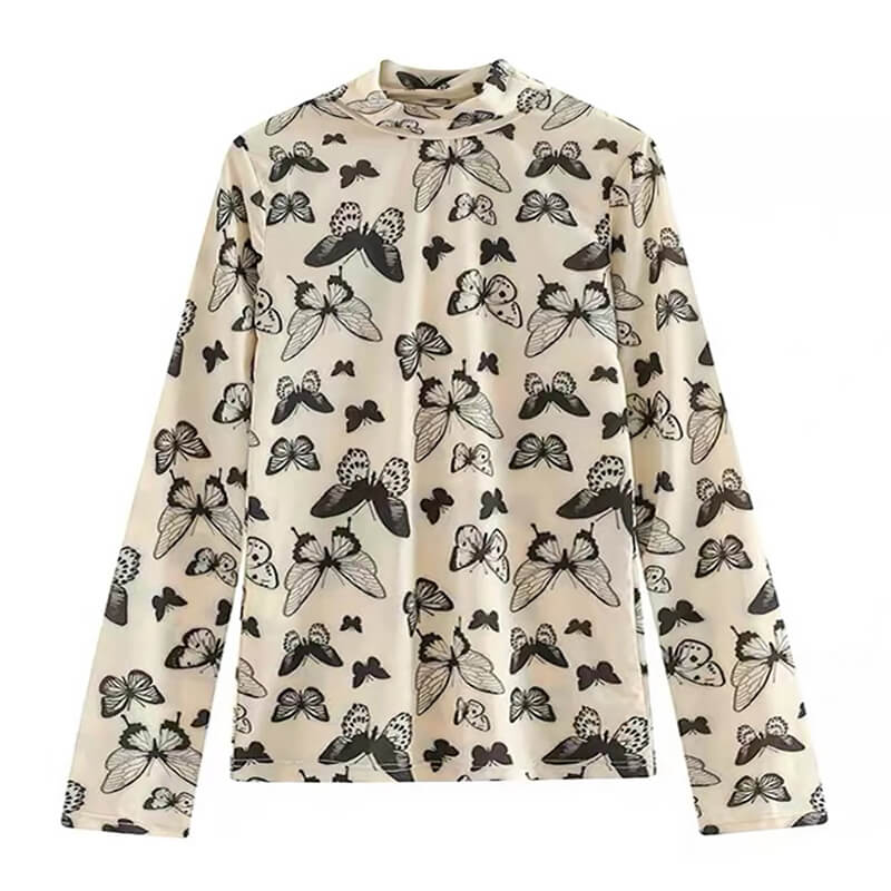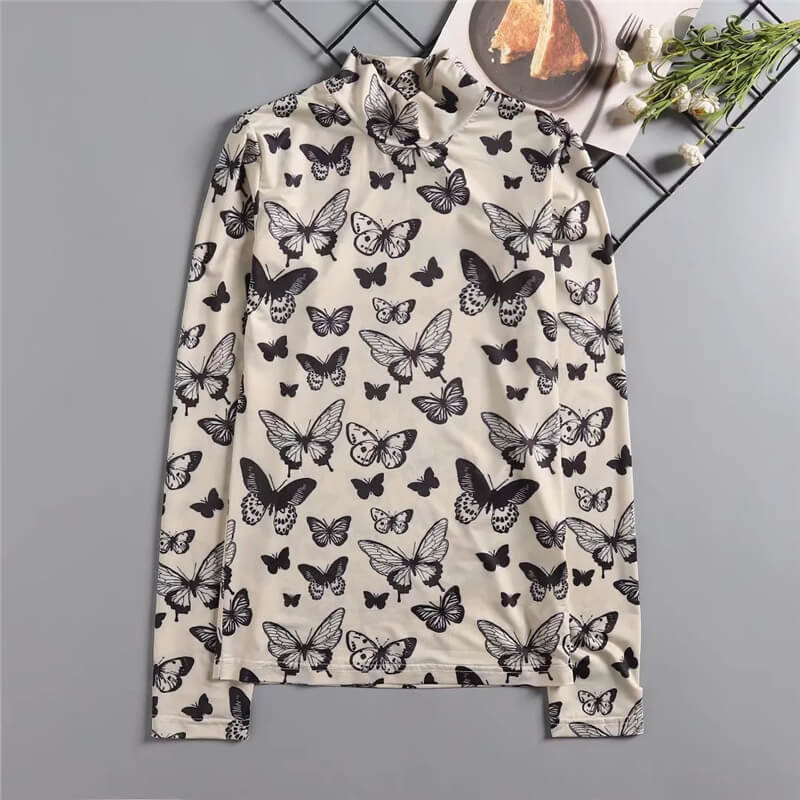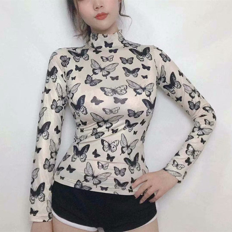 "BUTTERFLY HIGH COLLAR TIGHT" LONG SLEEVE TOP K060402