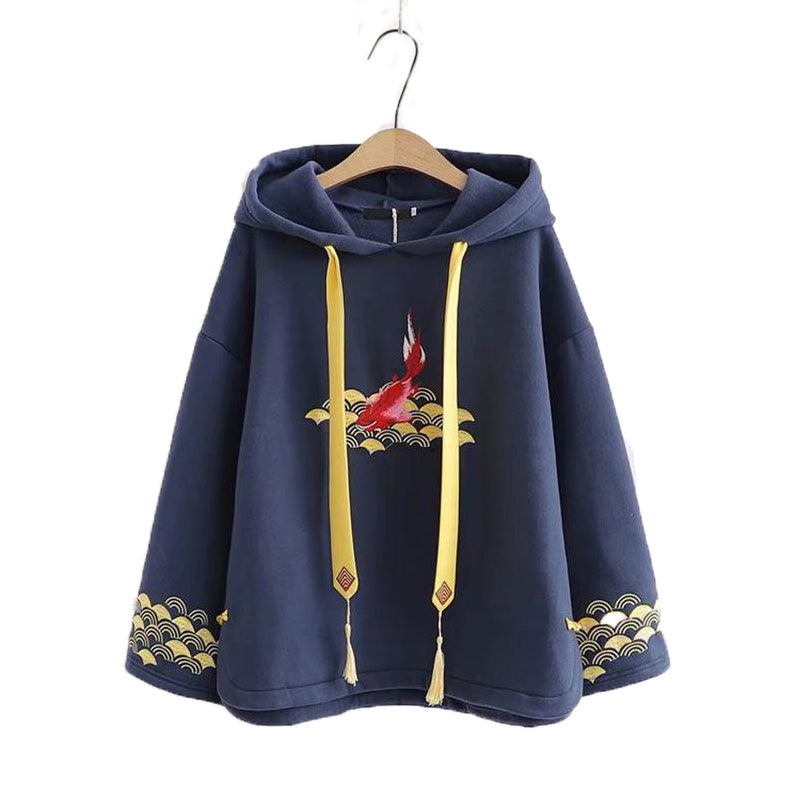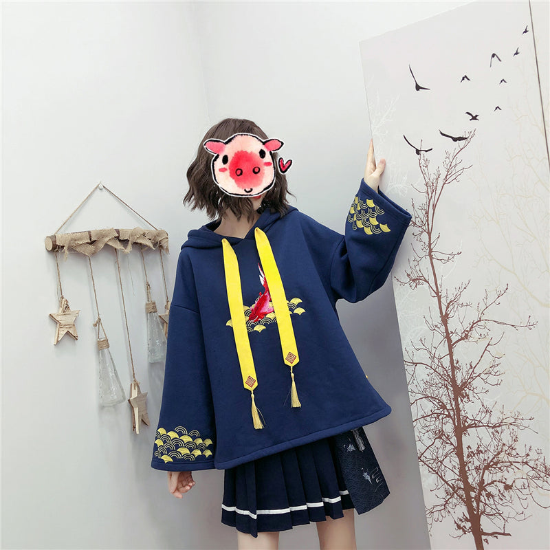 "CARP EMBROIDERED TASSEL" HOODIE N110602