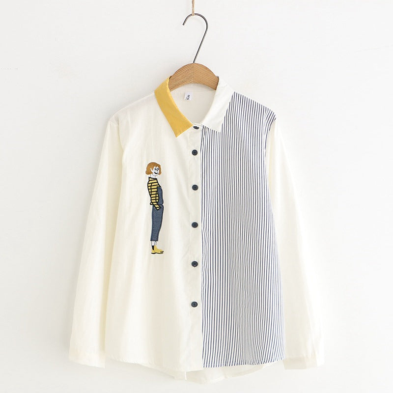 "CARTOON EMBROIDERED STRIPED" SHIRT Y032501