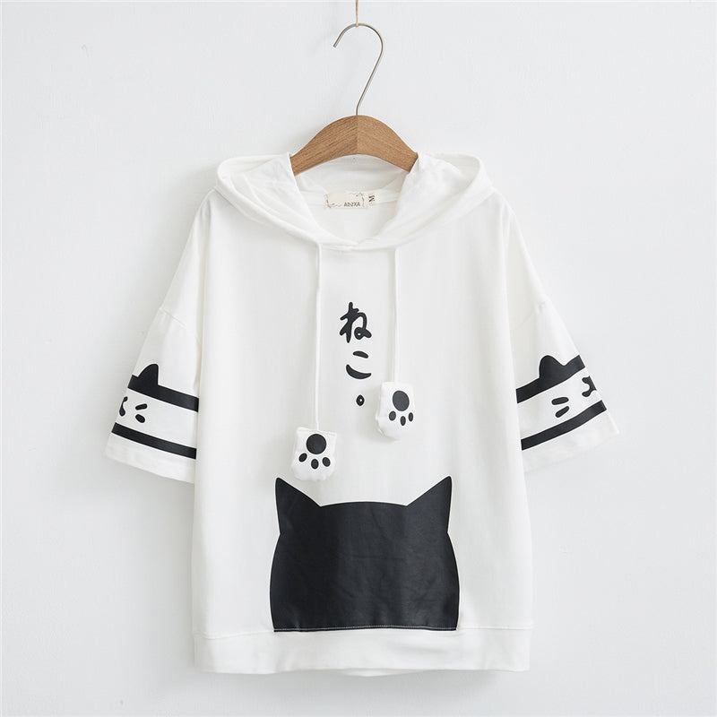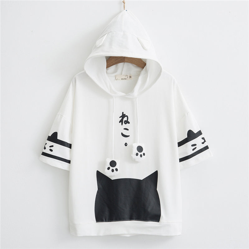 "CAT PRINT SHORT SLEEVE" HOODIE N081201