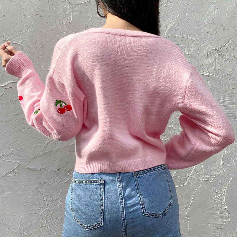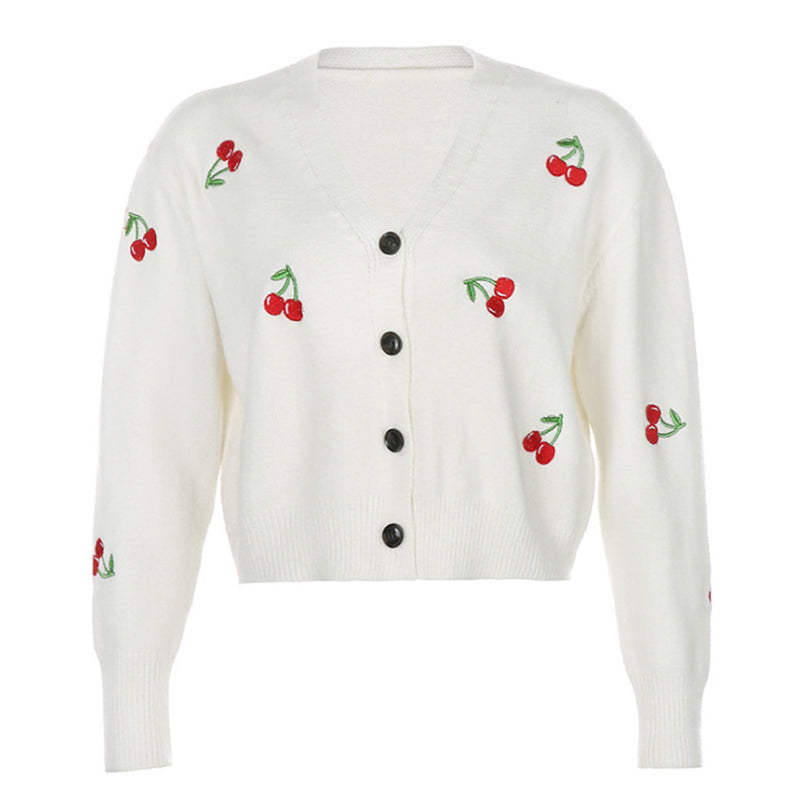 "CHERRY EMBROIDERED" KNITTED CARDIGAN N092703
