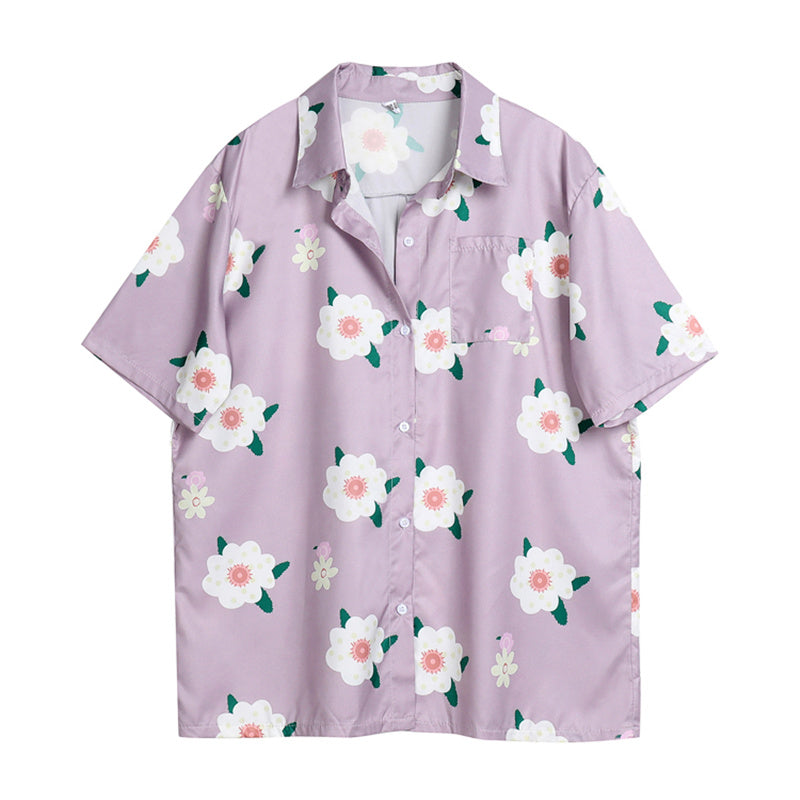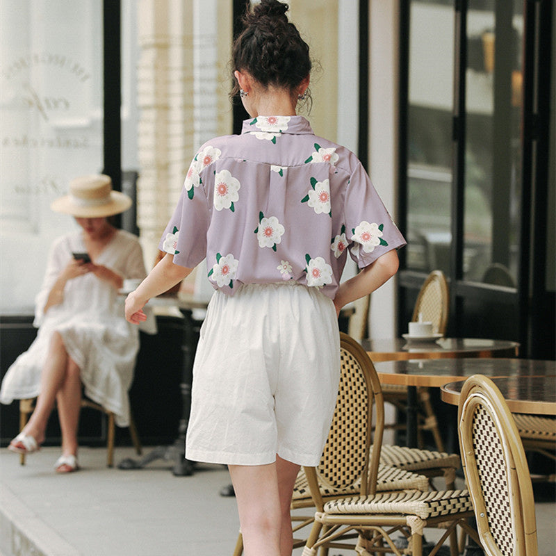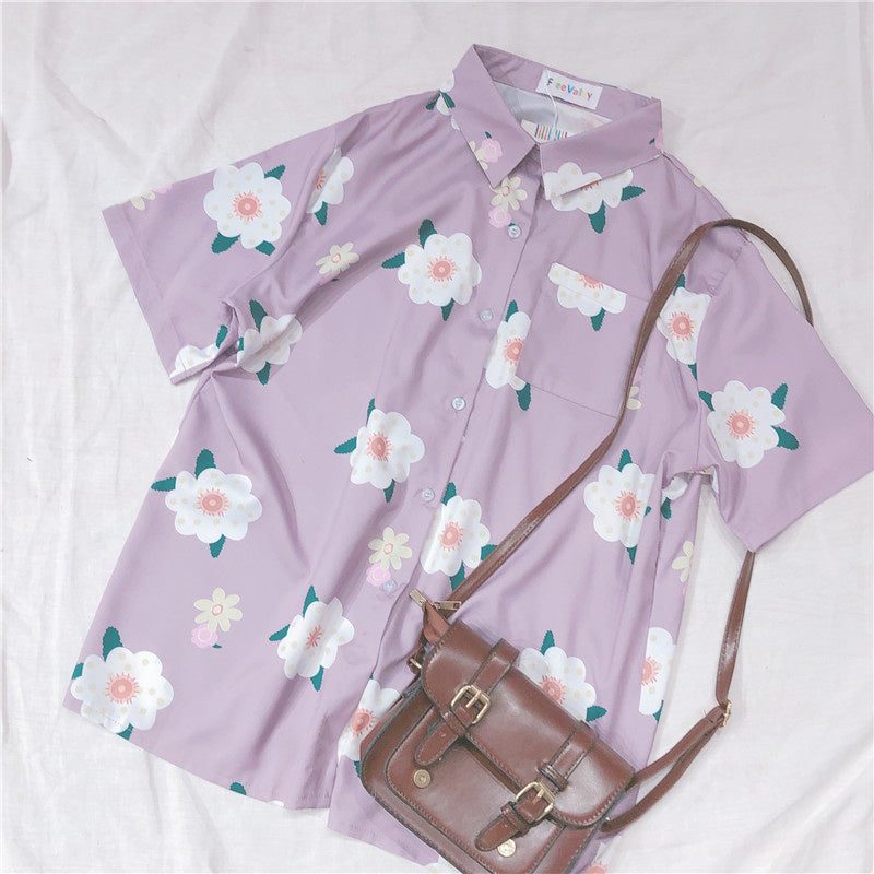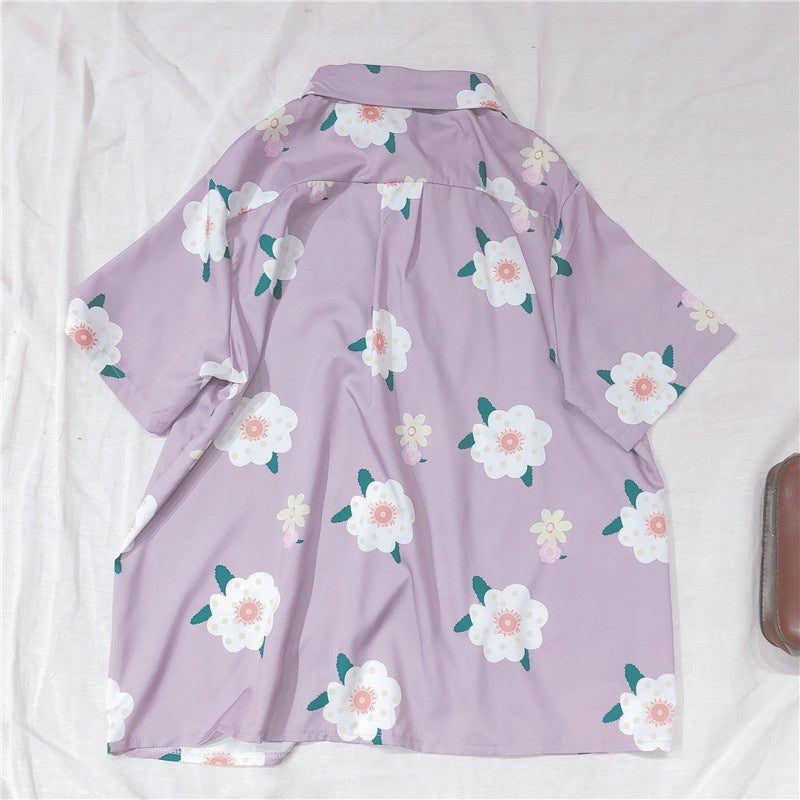 "CHIC CUTE FLOWER PURPLE " SHORT SLEEVE LOOSE SHIRT K081808