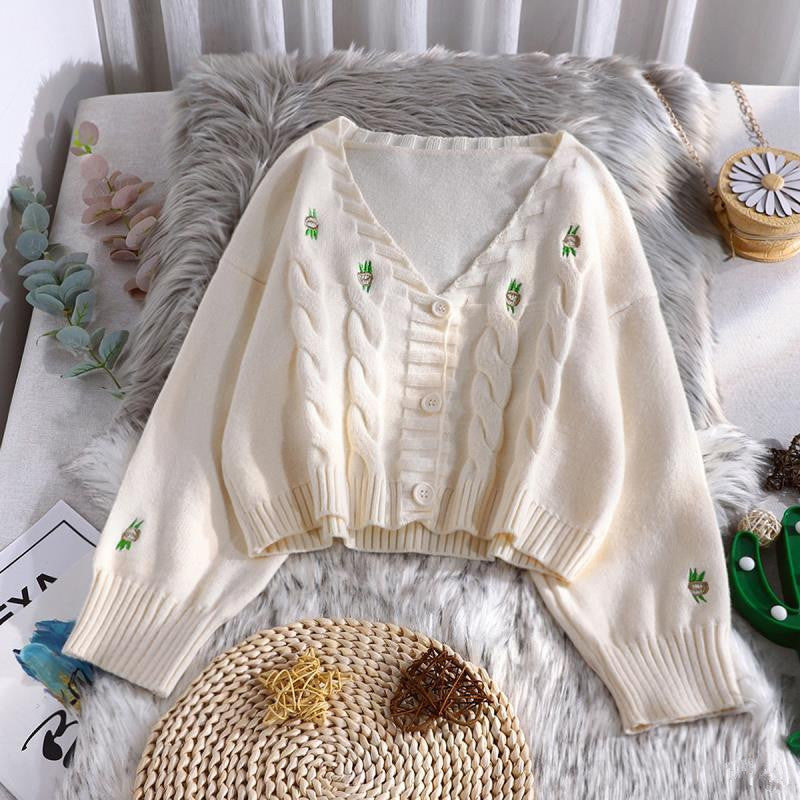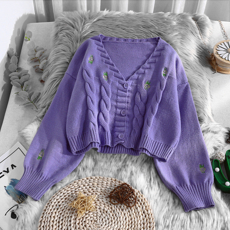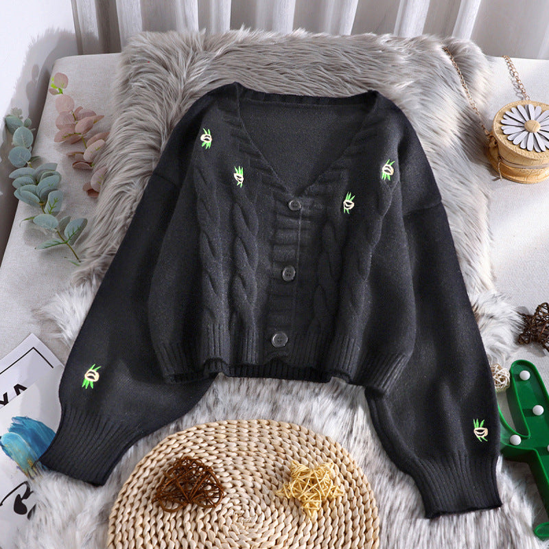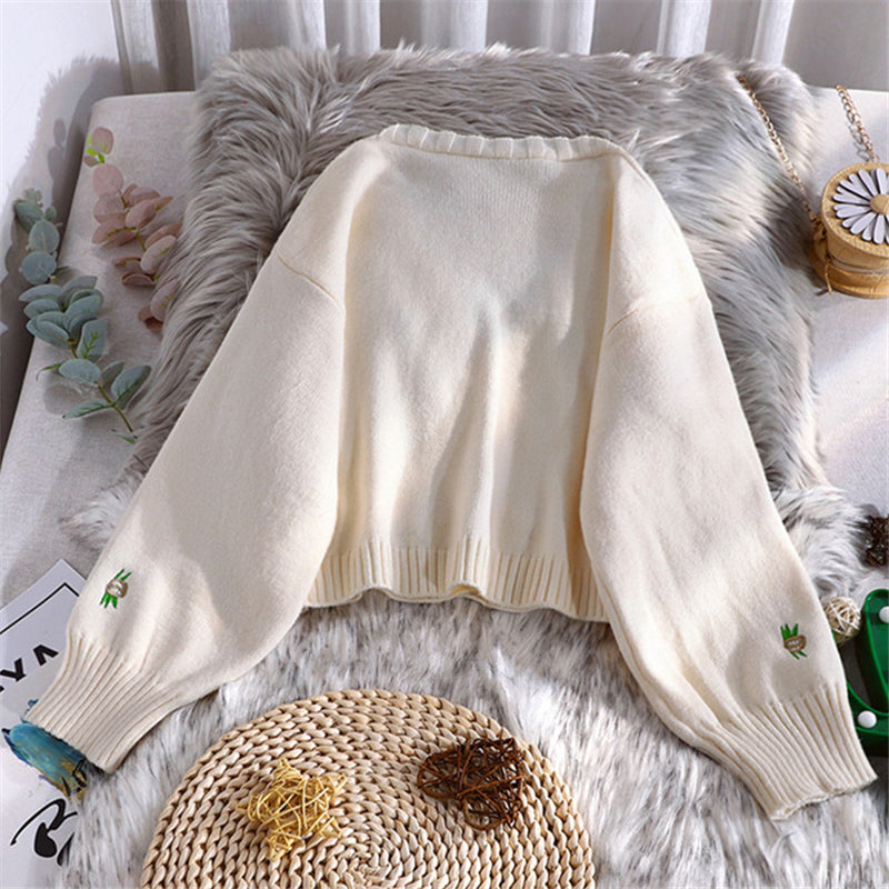 CHIC FLORAL EMBROIDERY KNITTED CROP TOP UB2713