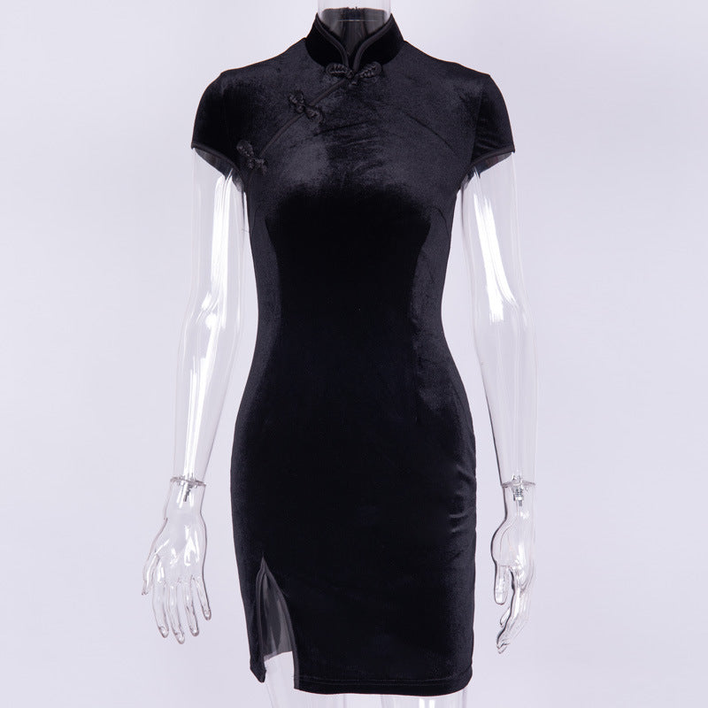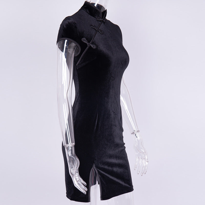 "CHINESE STYLE DARK VELVET" SLIT DRESS K061108