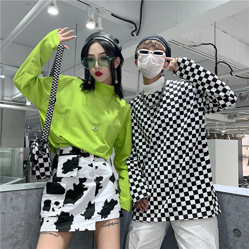 "COUPLE FLUORESCENT GREEN CHECKERS" LONG SLEEVES K050509