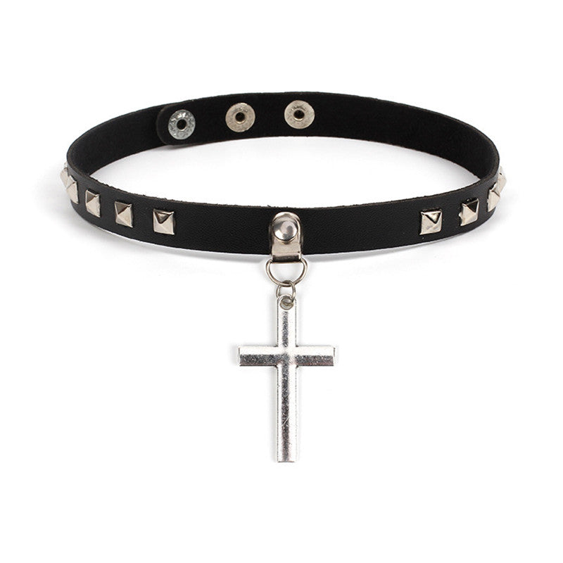 "CROSS PU LEATHER STUD" CHOKER K052903