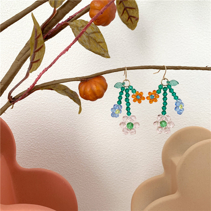 "CRYSTAL COLORFUL FLOWER" EARRINGS D042212