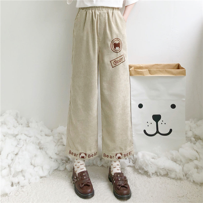 CUTE BEAR EMBROIDERY CORDUROY CASUAL PANTS UB3400