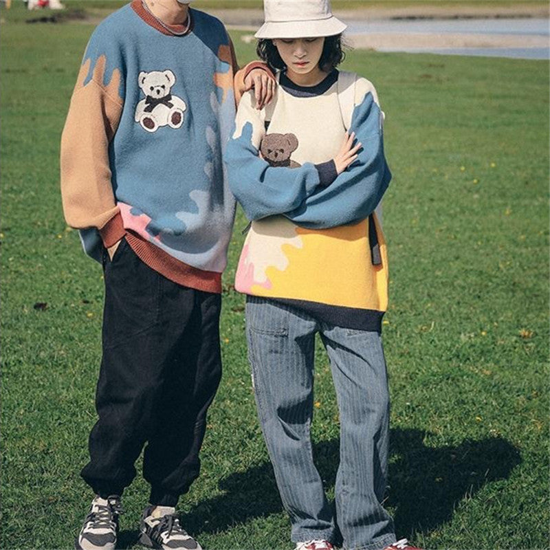 CUTE BEAR FASHION COLOR PULLOVER COUPLE SWEATER UB3439