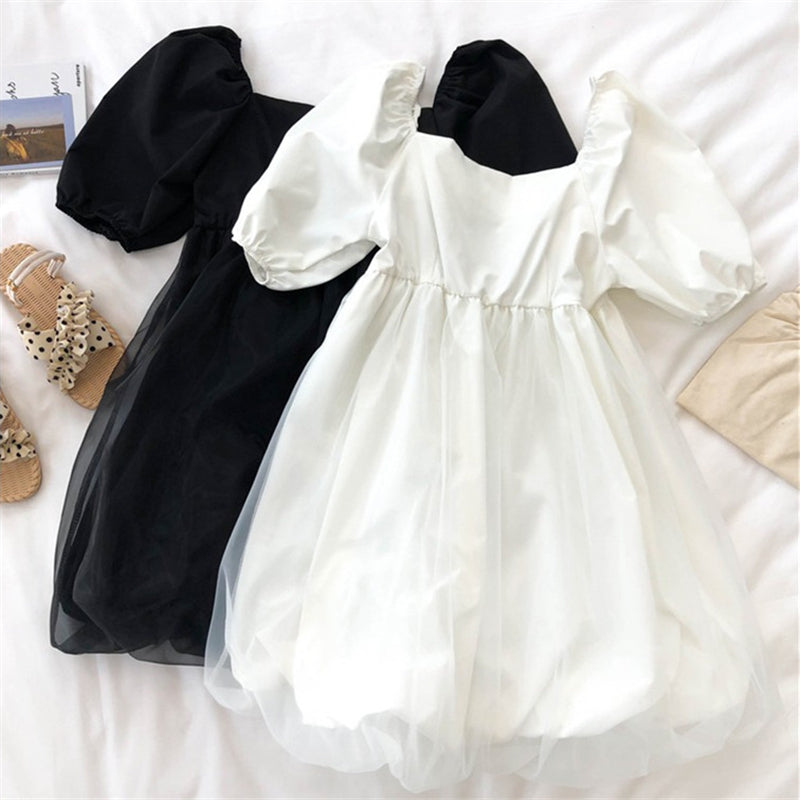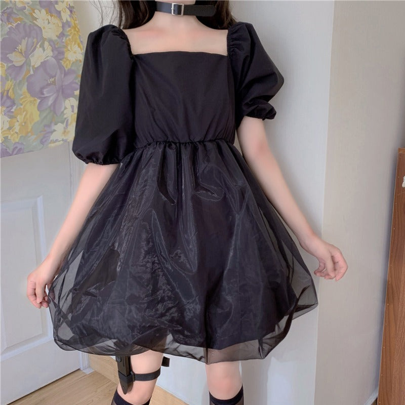 "CUTE BLACK/WHITE GAUZE PUFF" DRESS N041202