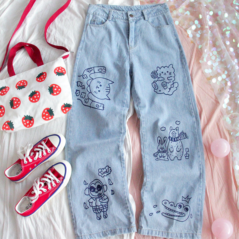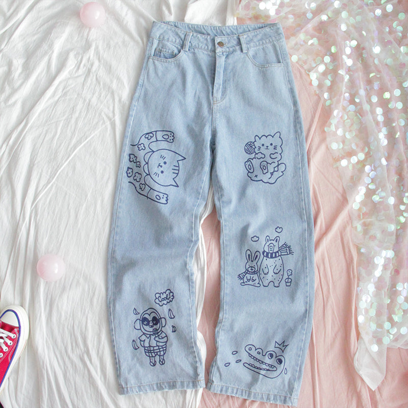 “CUTE CARTOON ANIMAL PRINT" JEANS K080301