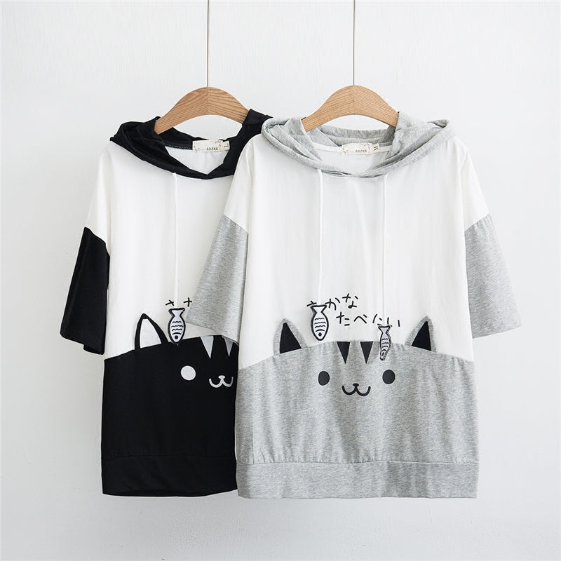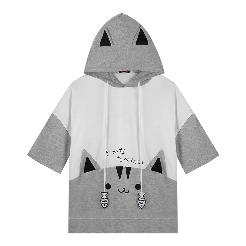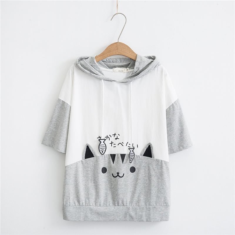 "CUTE CARTOON CAT SHORT SLEEVE" HOODIE N050702