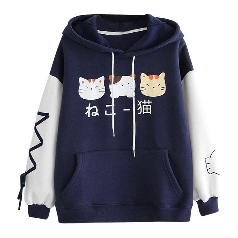 CUTE CAT PRINT HOODIE UB2640