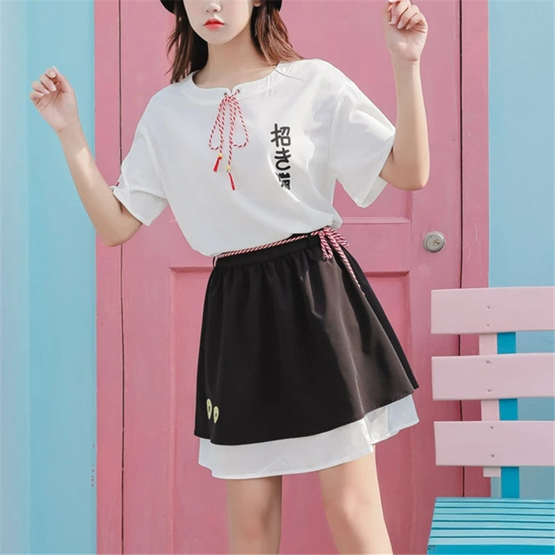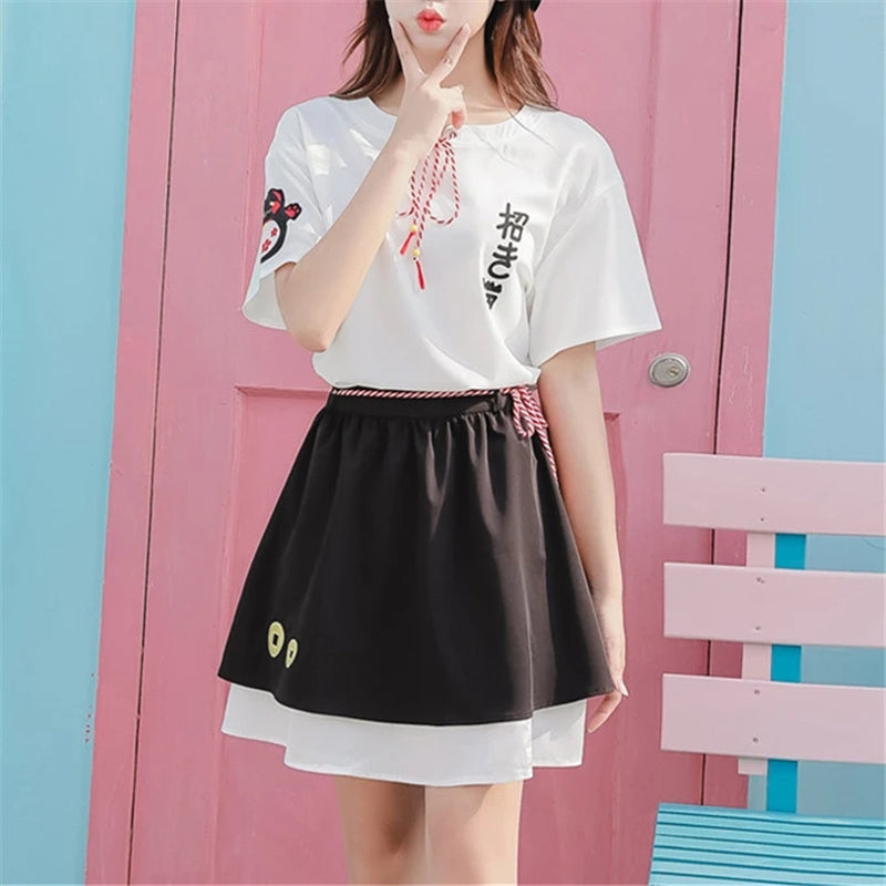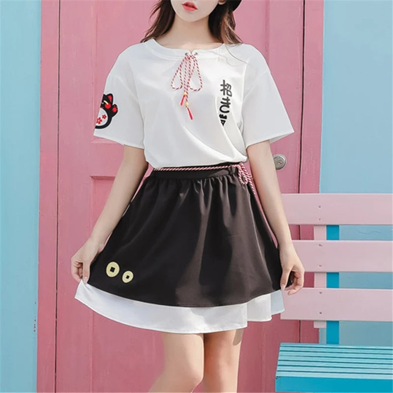 "CUTE FORTUNE CAT" SHIRT/SKIRT SET Y021613