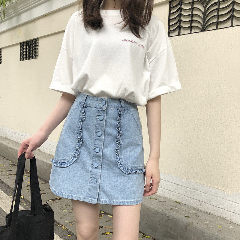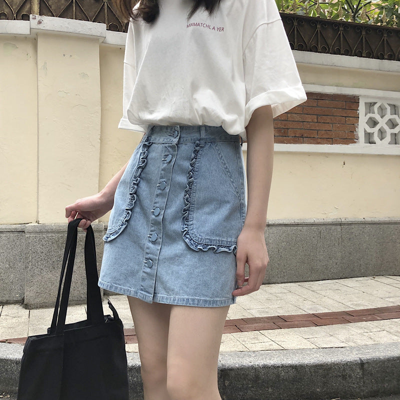 "CUTE LARGE POCKETS DENIM" SKIRT D052902
