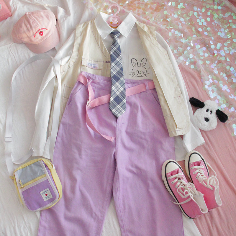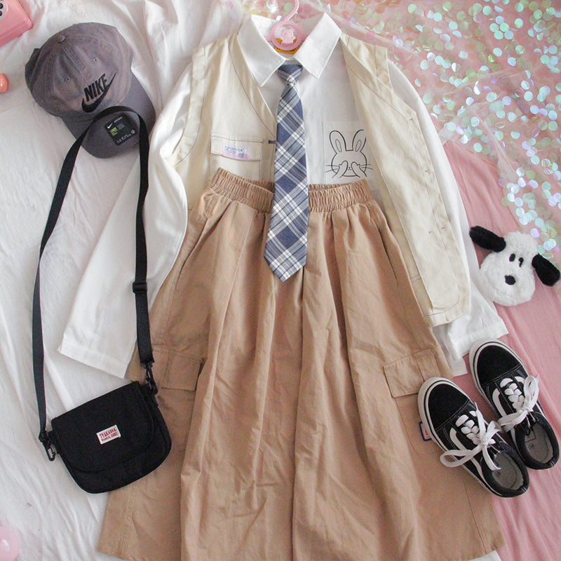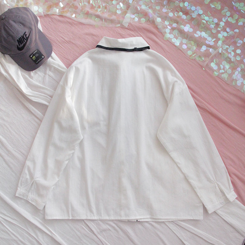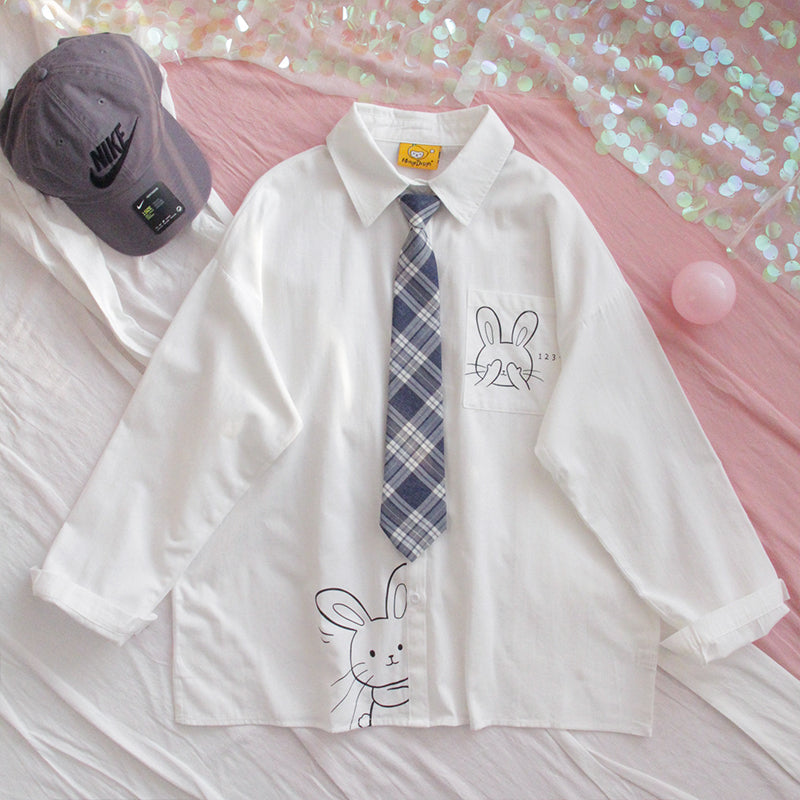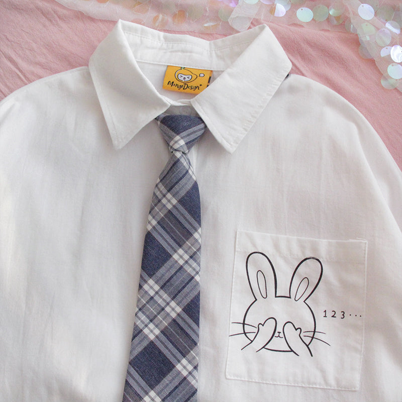 "CUTE RABBIT HIDE AND SEEK" WHITE SHIRT WITH TIE S032505