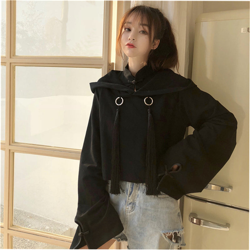 "DARK BLACK TASSEL CLOAK SHORT" HOODIE K102705
